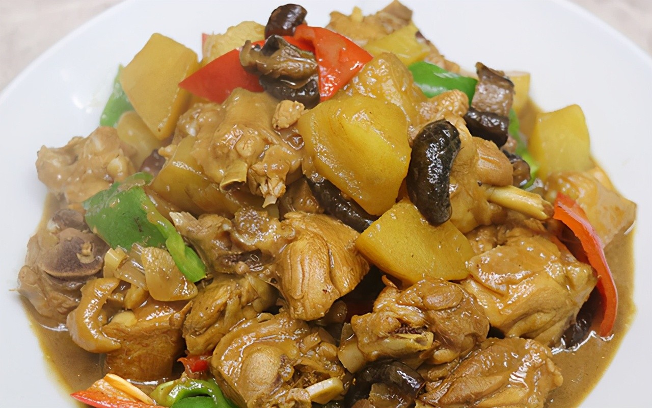 火遍大街小巷的黄焖鸡,教你在家做,鸡肉鲜嫩多汁,有荤又有素