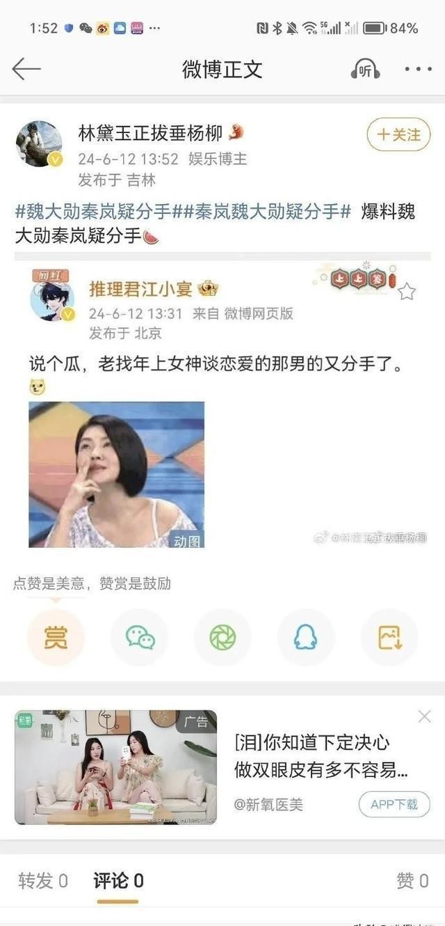 曝秦岚魏大勋分手,原因疑曝光,女方一月飞3次日本疑见新男友!