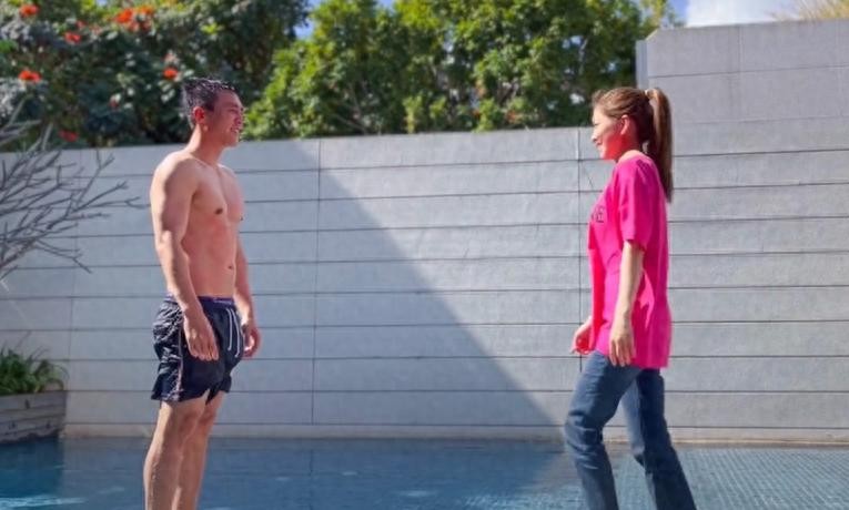 杜淳与娇妻泳池亲吻,却被“推”进泳池,身材保持好腹肌明显