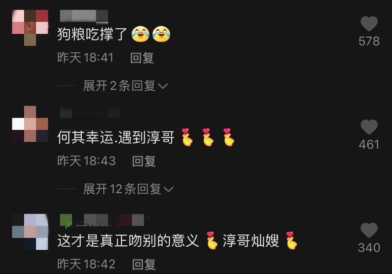 网友们看到杜淳与王灿秀恩爱的动态后,留言称狗粮吃撑了,但还是很喜欢看他们恩爱的日常。