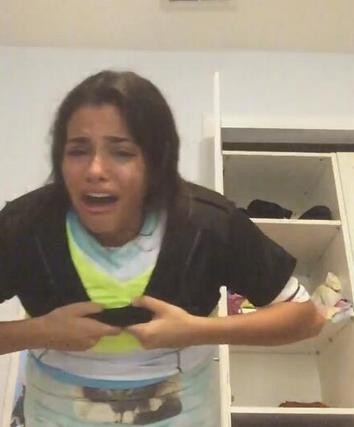 她神情慌张、崩溃痛哭地说“我无法……我无法把它们脱掉,我的天啊,我无法……完蛋了,我现在很不OK!”