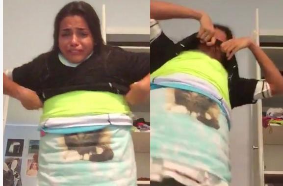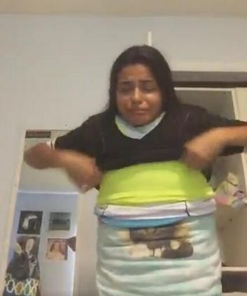 “100层挑战”持续发酵,继有人挑战过底妆、指甲油、睫毛膏,状况惨不忍睹,现在外国有位年轻正妹穿上“100件衣服”,结果却无法脱下,更让她快呼吸不过来,她把这段崩溃的过程录下并警告大家:“千万别尝试,否则你会死掉!”