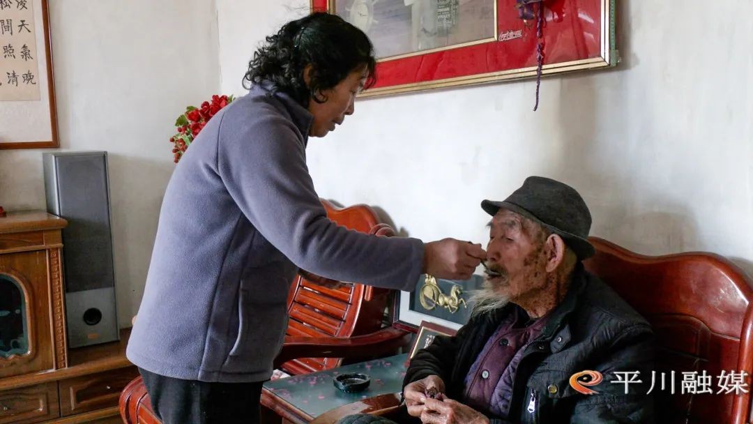 平川区宝积镇响泉村村民李锦梅:“咱们哪个人都老呢,我就一天一天伺候着,给的吃上、喝上、浪上,衣服洗干净,也是应该伺候的。”