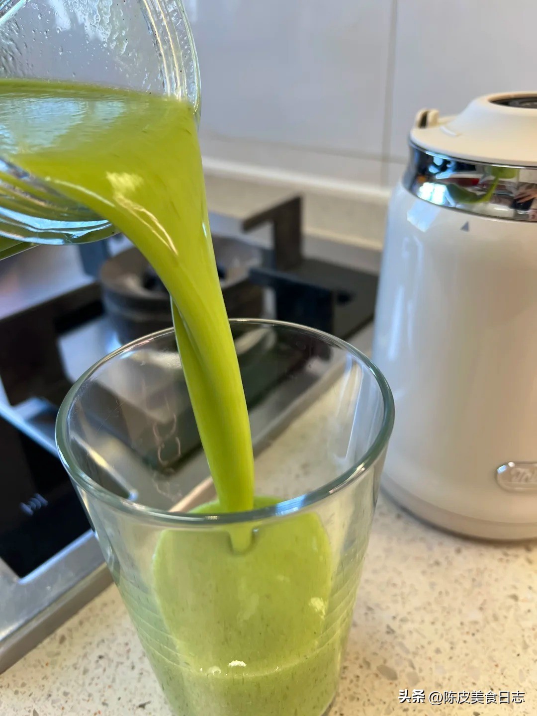 打完是这种绿色的看着就很舒服,口感细腻顺滑很好喝。