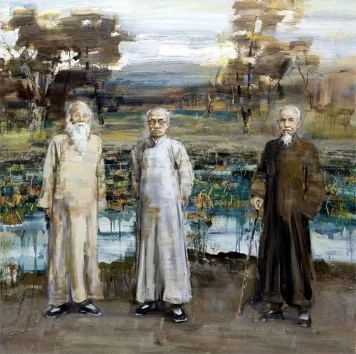 油画 《现代三儒》(马一浮、梁漱溟、熊十力)