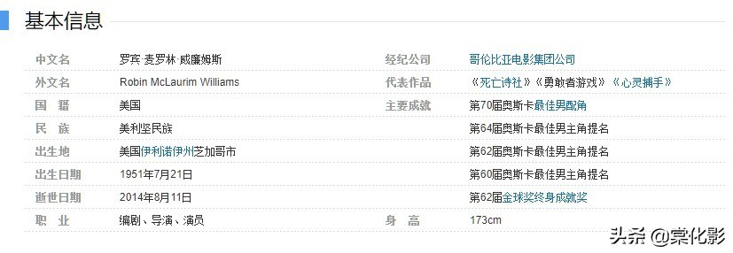 百度百科关于罗宾·威廉姆斯的简要介绍
