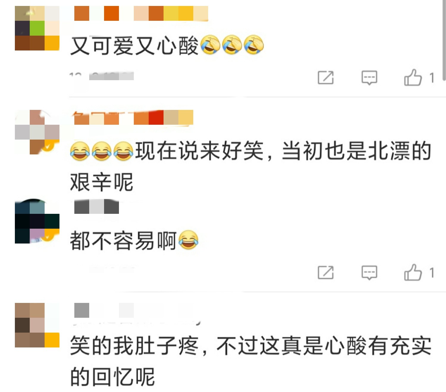 这段视频在引发了大众的关注后,有很多网友纷纷在网络上留下评论。有网友称"又可爱又心酸",有网友不表示"现在说来好笑,当时也是北漂的心酸呢",也有网友留言"笑得肚子疼,不过真是心酸又充实的回忆"。