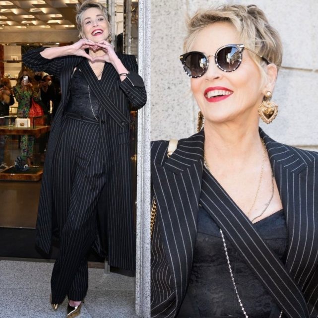 当天早些时候莎朗穿着条纹裤装亮相,同样呈现出了又美又飒的感觉,梳着一头利落的小精灵短发,在咧嘴笑的时候,更是洋溢着几分青春的气息,很难让人觉得她已经63岁了。