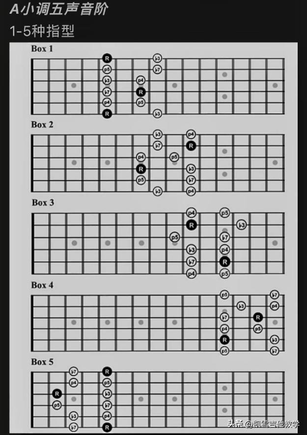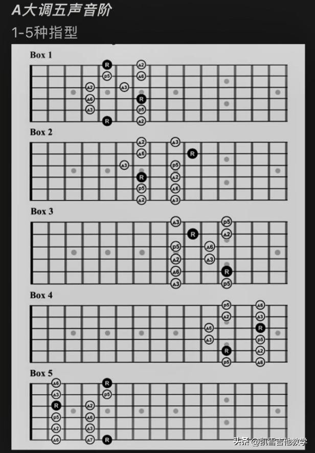 吉他新手从入门到进阶必须要学的吉他知识——五声音阶的五种指型大汇总。
