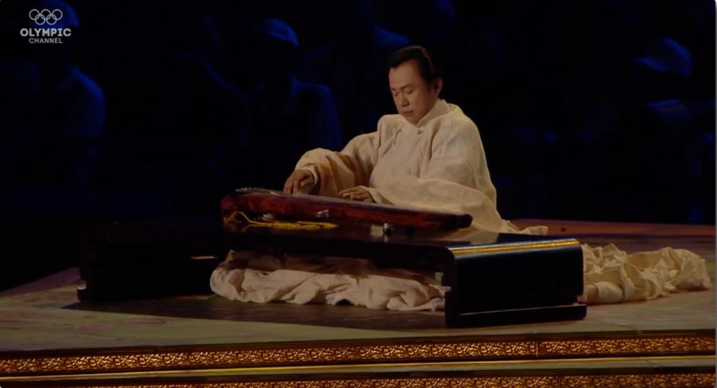 2008年北京奥运会开幕式上,古琴演奏家陈雷激演奏古琴