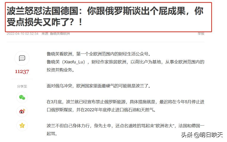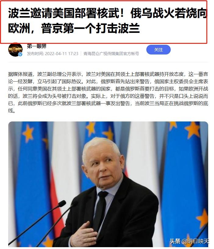 把波兰的戏份一幕幕梳理如下:其一、挑衅俄罗斯的小弟白俄罗斯,两国边境已经开火了,这明显不把俄罗斯放在眼里啊;其二、口出狂言,要收回俄罗斯的飞地加里宁格勒,真以为俄是软柿子随便捏么?其三、公然要求美在其领土上部署核武器,这是要把欧洲引向第三次世界大战的节奏吗?其四、俄乌冲突过程中,看热闹不嫌事大,使劲拱火,极尽煽动之能事,左手大力支援乌克兰,送钱送炮送子弹,右手不遗余力制裁俄罗斯,以把俄逼入绝境;其五、怒怼德国,炮轰法国,公开要求法国和德国“改过自新”,应对俄罗斯更加强硬,采取更加严厉的制裁(法德何时沦落到如此地步?欧洲大哥二哥的脸面何存?