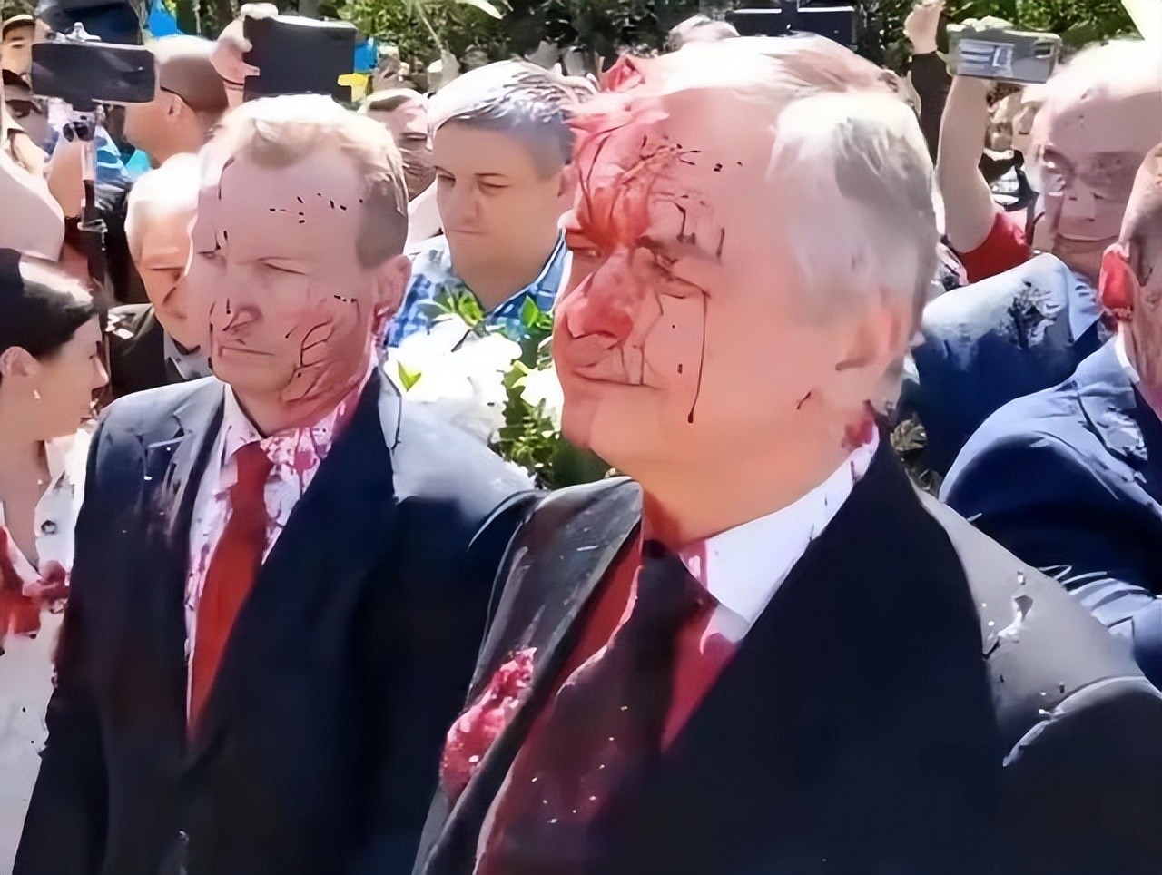 这不,昨天又闹大了,硬是以黑马的姿态登了各国的头条,全球不关注都不行。就在昨天,俄罗斯卫国战争胜利的77周年纪念日,俄罗斯驻波兰大使在其首都华沙的苏联烈士陵园给为在二战中牺牲的苏联士兵献花时竟然被乌克兰极端份子用红色染料泼在身上,而旁边的波兰警卫人员居然无动于衷,任由事情发展,更为过分的是闹事份子最后干脆把红色染料洒在俄罗斯大使的脸上。古语曰:“打人不打脸”,而这次不但打脸,而且打得是一个国家的脸,打得是一个坐拥几千枚核弹头这样军事巨擘的脸,啪啪啪作响。