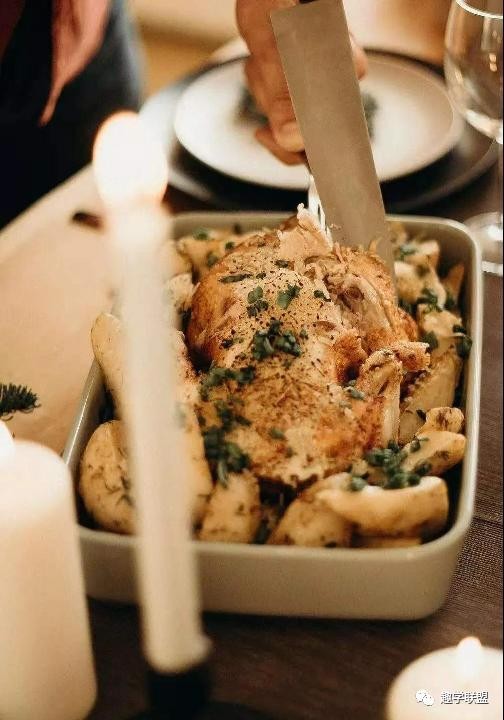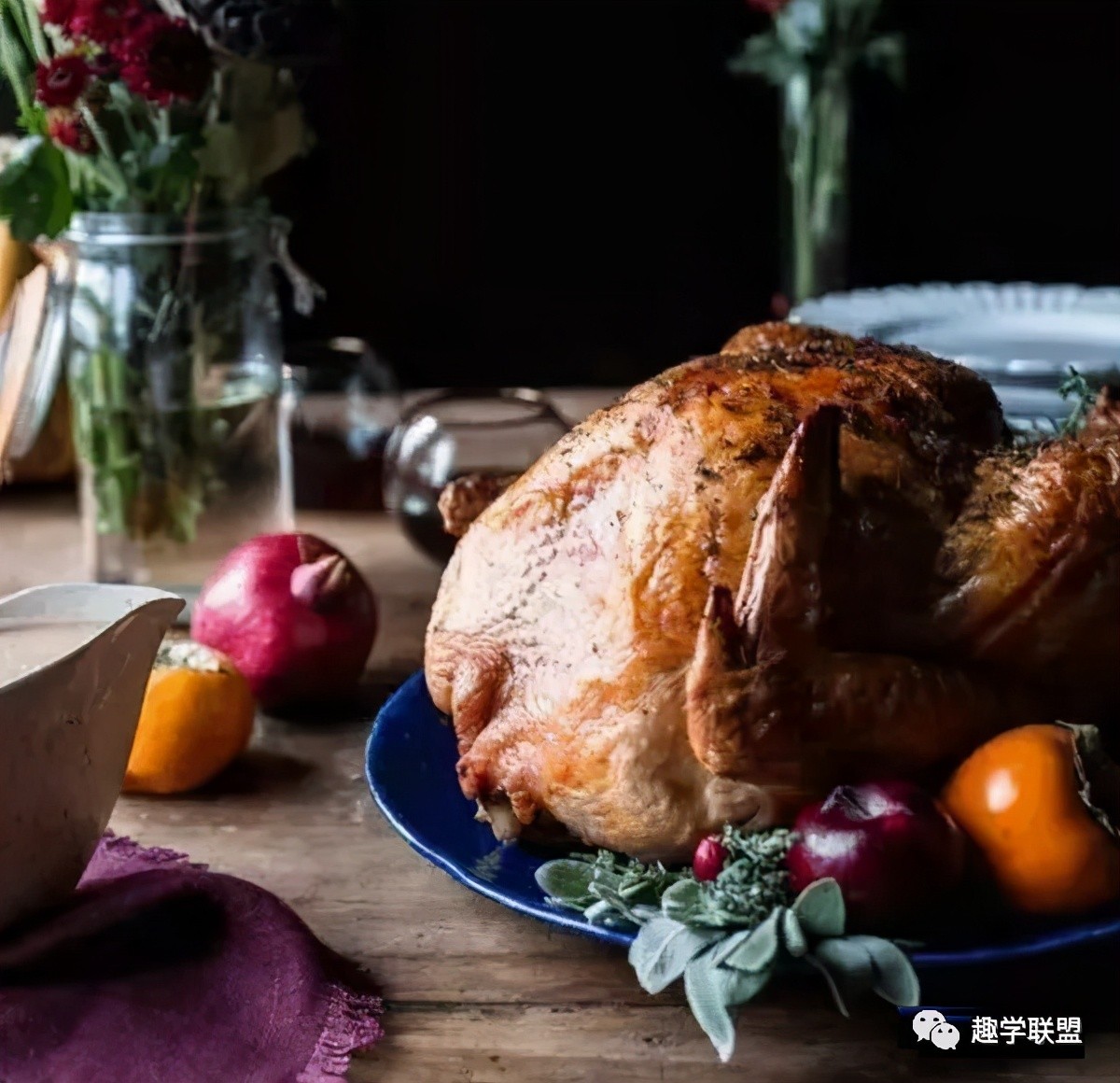吃火鸡:火鸡是感恩节的传统主菜。每逢感恩节,美国和加拿大人都要吃肥嫩的火鸡。欧洲移民到美洲后,觉得火鸡的外观与土耳其「T身黑头红」的服装特色很相像,于是叫它们为「Turkey」。