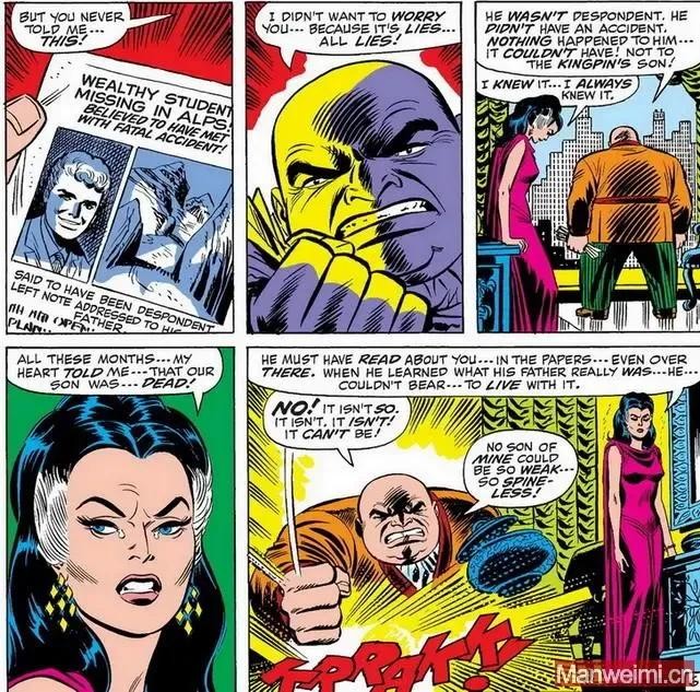 随着,威尔逊的影响力持续上升,以及后来对威尔逊声誉构成威胁的英雄逐渐崛起。在妻子的敦促下,威尔逊后来放弃了他的犯罪帝国,并在退出犯罪活动之前,再次试图杀死蜘蛛侠,但没有成功。