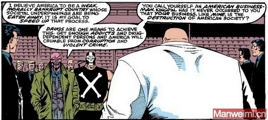 “Kingpin” 这个称号参考了黑手党俚语中犯罪头目的头衔