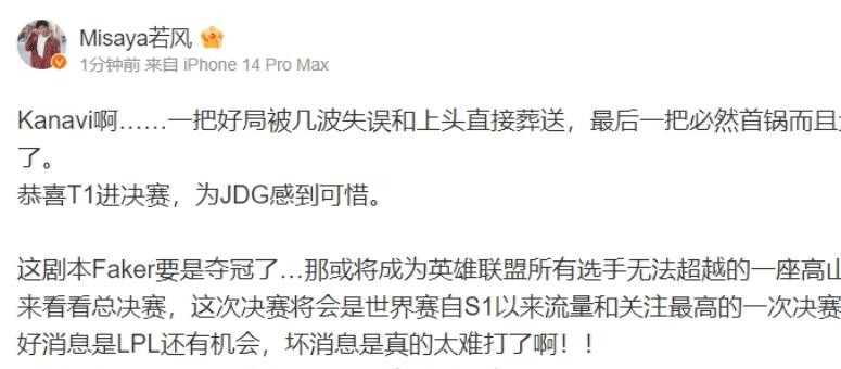 更有一部分粉丝表达了极度失望,他们感叹自己的偶像队伍在一整年的BO5中取得了辉煌战绩,却在最重要的一场BO5中败北。他们不禁质疑JDG到底在打什么,对于这样的失利感到困惑。