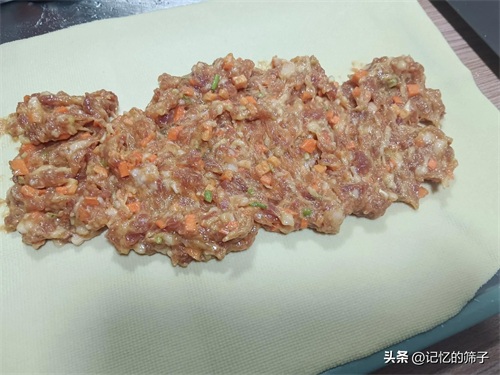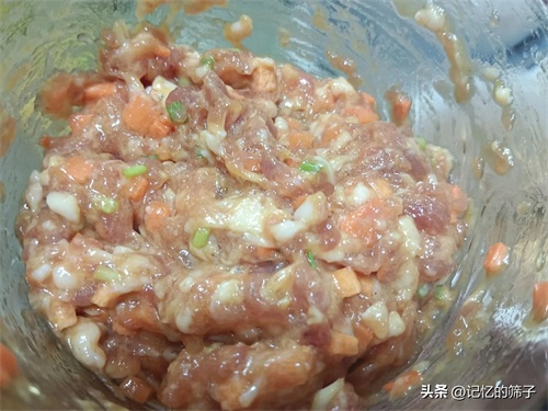 肉馅加鸡蛋,加葱花、胡萝卜丁,加少许淀粉,加盐加调味料拌好。加什么取决于你喜欢什么,还可以加香菇丁、木耳等,都可以。