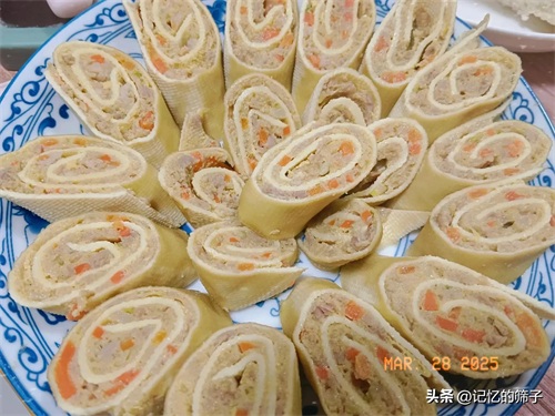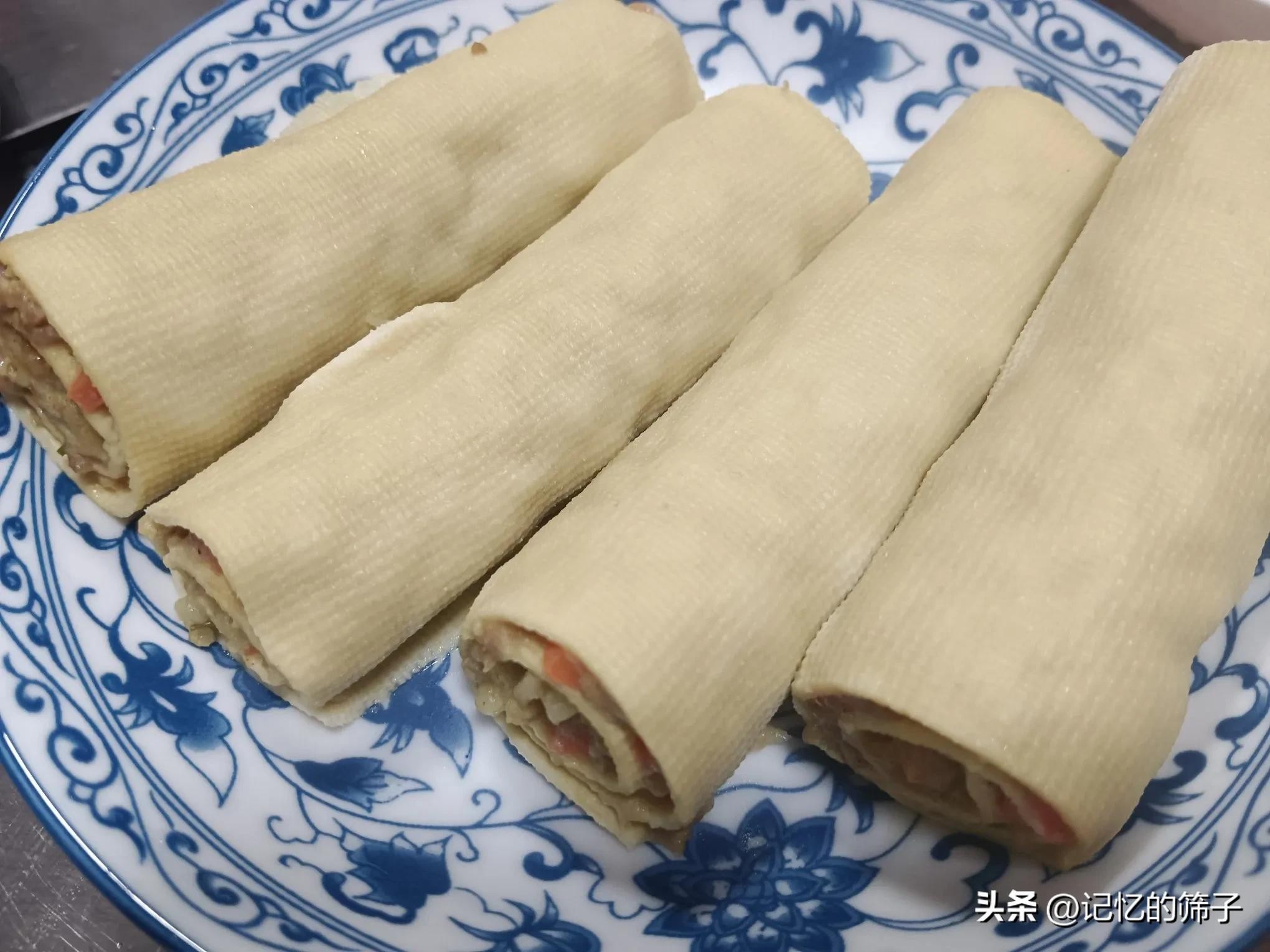 一张豆皮,一点肉馅+鸡蛋,主要的食材就够了。