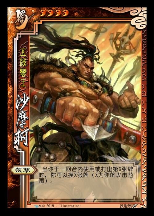 但在这名武将的眼里,过多的赘述不过增加玩家的负荷,而自己简短的描述,却为在三国杀牌局中超强的实力提供了保证。他就是我们今天要介绍的主人公——沙摩柯。