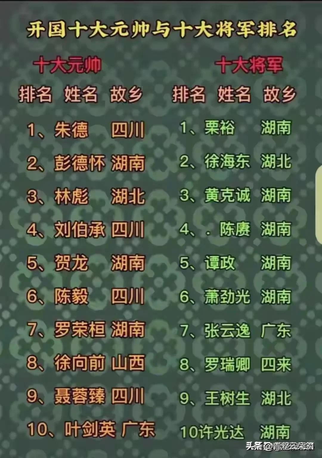 终于有人把“开国十大元帅与十大将军排名”整理出来了,涨知识了