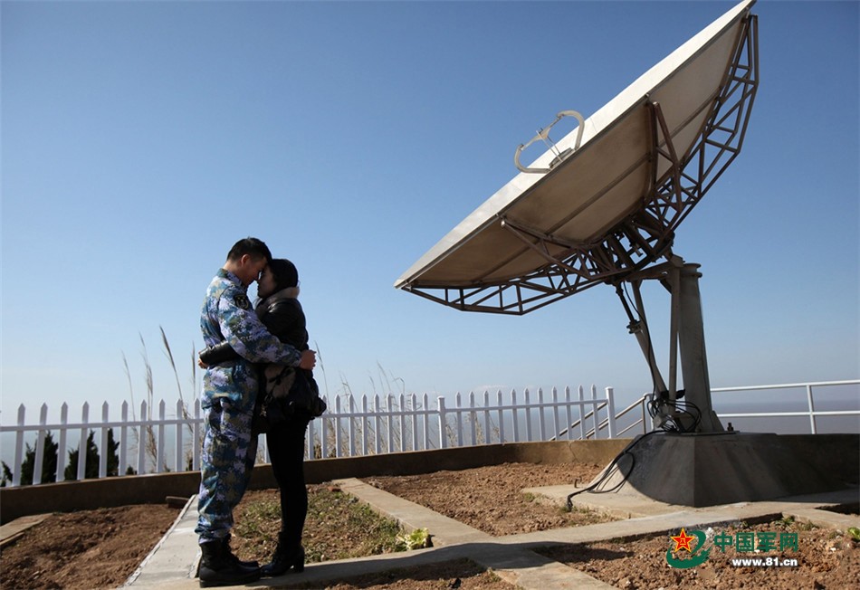 滕超超和妻子刘利结婚已9个多月,却一直分隔两地。婚后第3天,滕超超执行任务赶回了部队。2月3日,刘利踏上了素有“上海第一哨”之称的东海舰队某水警区观通站,完成自己的心愿:在岛上度过一次特殊的新婚蜜月。(徐巍摄影报道)