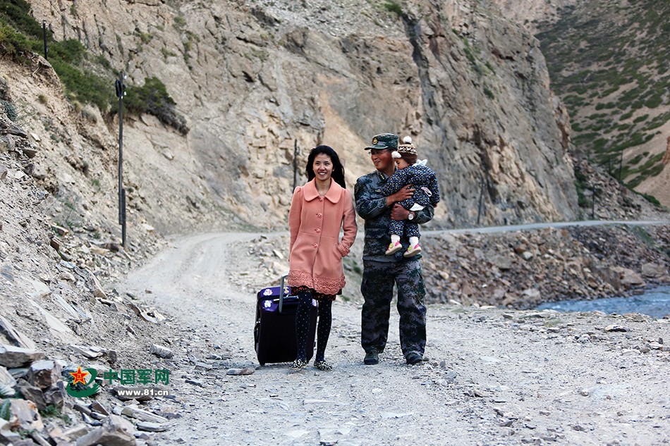 某边防团玉其塔什边防连军医王浩的妻子李泓荟,怀抱着一岁两个月的女儿,从老家四川眉山出发,坐飞机、搭火车、乘汽车辗转4600多公里,前往新疆阿图什看望朝思暮想的爱人。这是他们结婚3年来第二次见面。一路上,她不知道孩子哭过多少次、闹过多少回,只知道她的丈夫正在等着她,盼望一家的团圆。(王宁摄影报道)