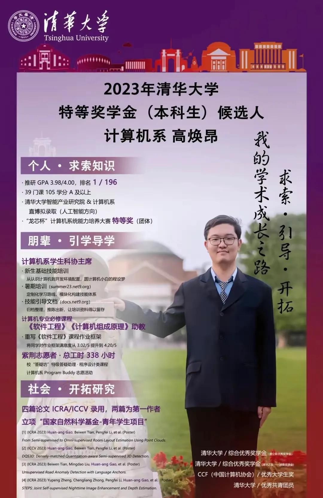 我比较看重这2位,高焕昂和戴言作为计算机系的杰出本科生,他们的卓越学术成就和领导力在未来职业发展中展现出巨大潜力。高焕昂以其温和友好的性格和强大的编程能力在三维点云场景理解领域取得了显著的成就,同时在科协主席职务上展现了领导力和团队协作精神。