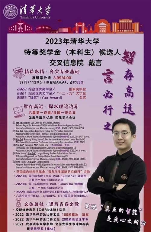 戴言则以能量充沛、个人上进心强的形象脱颖而出。他在机器学习领域的理论能力和国际交流上的积极表现使他在NeurIPS、ICML、ICLR等顶级学术会议上频频亮相。尽管论文数量庞大,但他的学术功利性可能会引起一些争议。此外,他在游泳和身体素质方面的优秀表现也为他未来的科研道路奠定了基础。