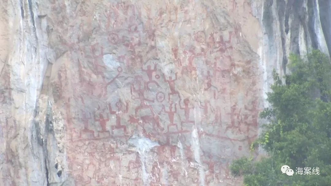 乘船远眺,四周青山环绕、奇峰罗列,清澈的江水,茂林修竹,两岸边一幅幅赭红色岩画让游客赞叹不已。