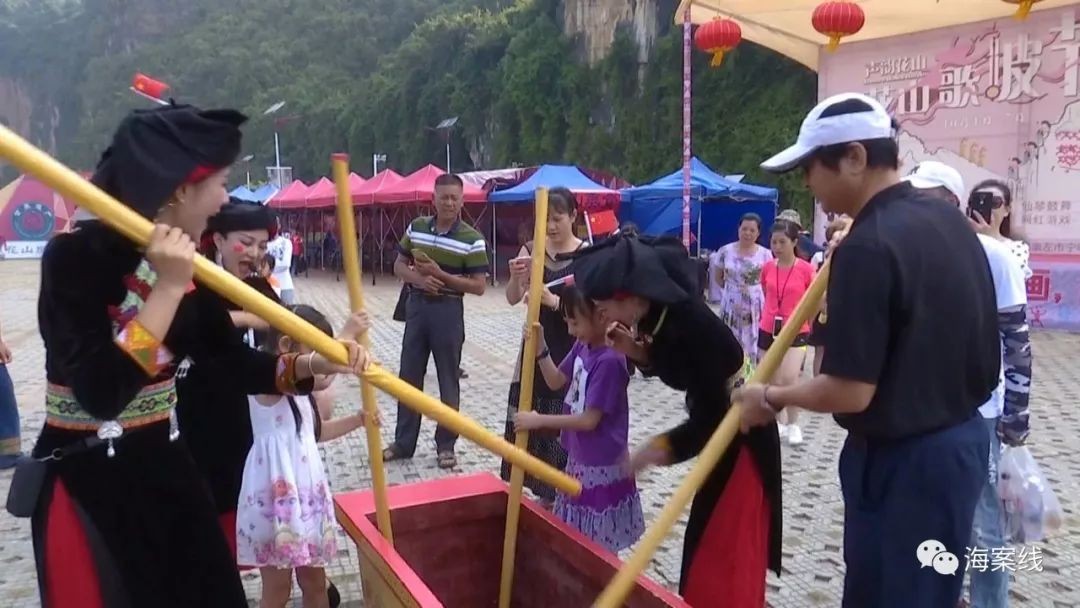 打榔舞是自治区级非物质文化遗产名录项目,10月2日当天,打榔舞在珠连活动广场精彩上演,大家迈着整齐的舞步一起打榔、跳舞,让游客们更加深刻地感受到千年非物质文化遗产的独特魅力。国庆期间,景区还推出一系列独具壮家特色的民俗风情节目,壮族传统歌圩对唱、竹竿舞、岩画展馆布置、越人美食汇等。