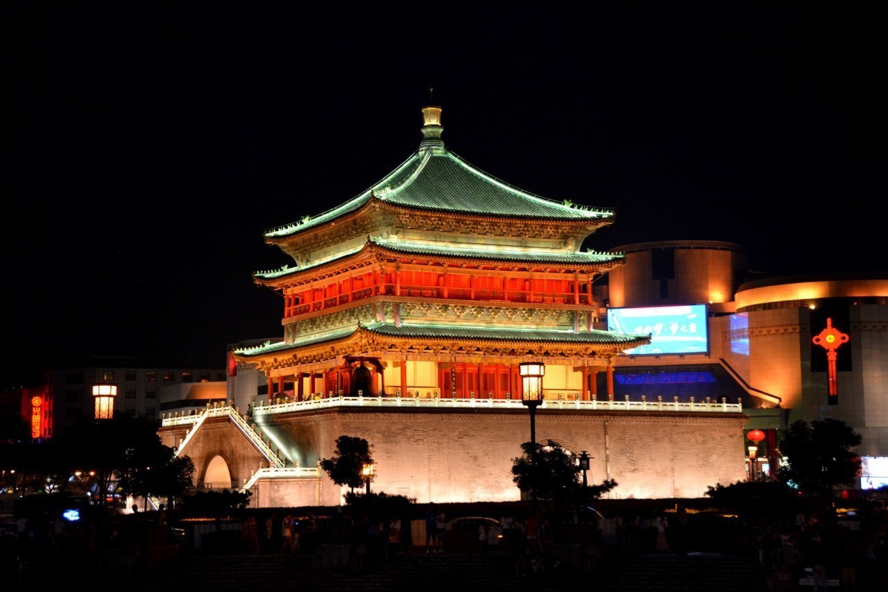 鼓楼与钟楼相望,是西安的地标,夜景恢弘大气,仿若梦回唐朝。