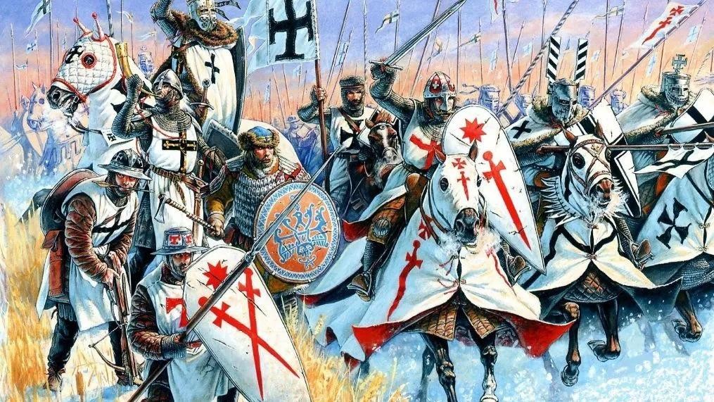 然而,东征亚洲并非是十字军唯一前往的地方。在教皇的宗教大战略里,除了东征之外,还有南征和北征,其中十字军北征,即是著名的北方十字军的由来。一提到北方十字军,人们无疑会想到与立宛陶、罗斯公国鏖战的条顿骑士团,但人们不知道的是,其实教皇并非只成立了医院、圣殿、条顿三大骑士团,早在条顿骑士团前往普鲁士之前,负责征讨波罗的海沿岸的是教宗的第四个骑士团:宝剑骑士团。