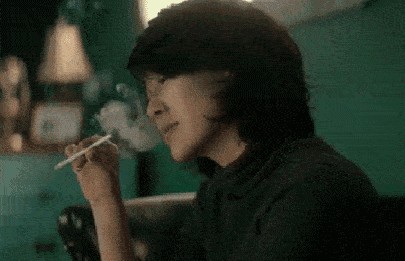 《老炮儿》里的话匣子,短发凌乱,睡眼惺忪,手持香烟,烟雾缭绕。