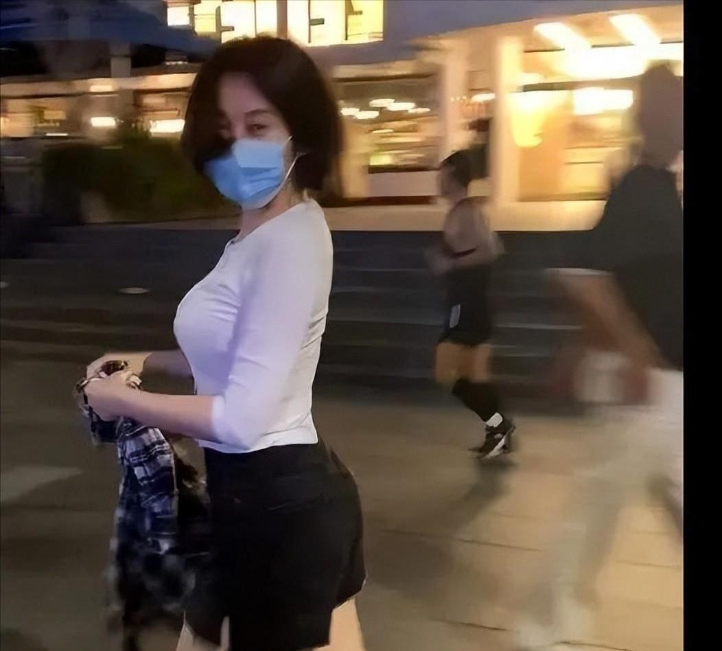 一身黑色的小香风,梳着贴头皮的光明顶,皮肤依旧白皙透亮。