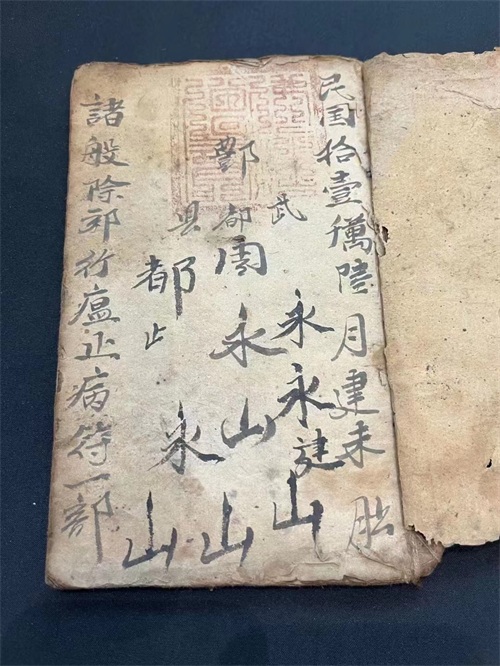除瘟止病符,民国,内有大量道教彩绘符咒图画,书中记录了瘟疫符、收瘟符、戒绝瘟煞符等大量道教内秘符法,21个筒子页。