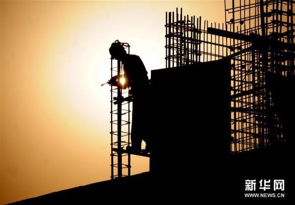 10月7日,在巴基斯坦西北部城市白沙瓦,工人在落日中工作。 新华社发(赛义德·艾哈迈德摄)