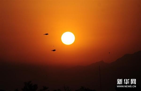 这是10月7日在巴基斯坦西北部城市白沙瓦拍摄的落日。 新华社发(赛义德·艾哈迈德摄)
