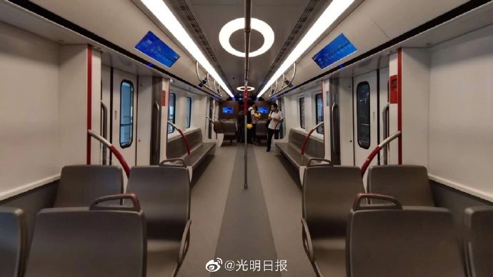 【国内时速最快地铁亮相广州】9月25日上午,由中车株洲电力机车有限公司制造的广州地铁十八、二十二号线首列车正式交付。十八和二十二号线全长超过90公里,为国内首条时速160公里的全地下市域快线,线路建成后将连通广州主要枢纽,实现南沙自贸片区25分钟到达广州南站、30分钟到达广州东站的时空目标,未来还将延伸至珠海、中山、东莞等城市。(光明日报全媒体记者王忠耀)