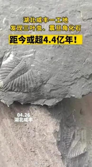 2022年4月26日,湖北省恩施州咸丰县高乐山镇龙家界村一工地施工人员发现,在1200米高山上的石块中有不少远古化石。经相关地质专家判定,这些化石前身为三叶虫和中华震旦角。距今或超4.4亿年。 重大发现!或超4.4亿年。