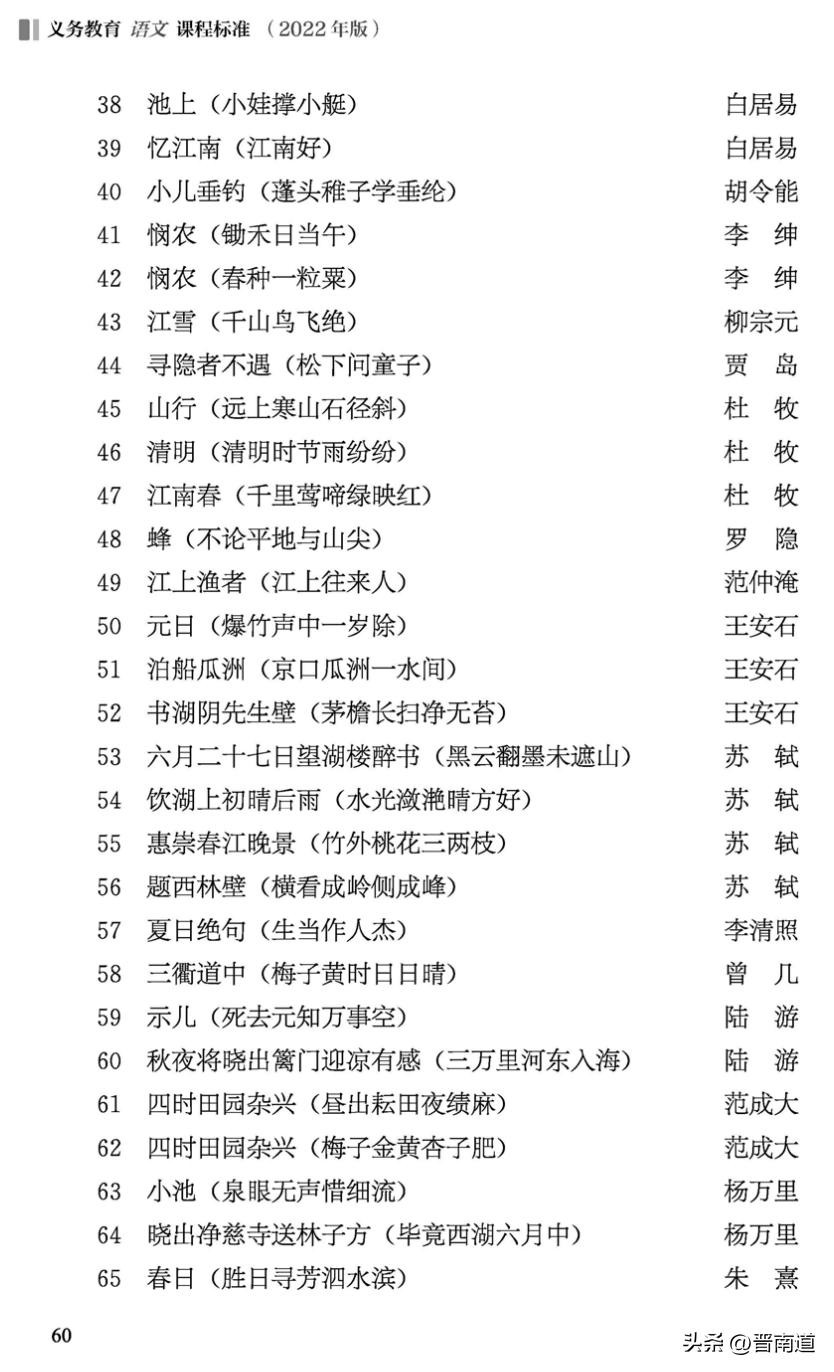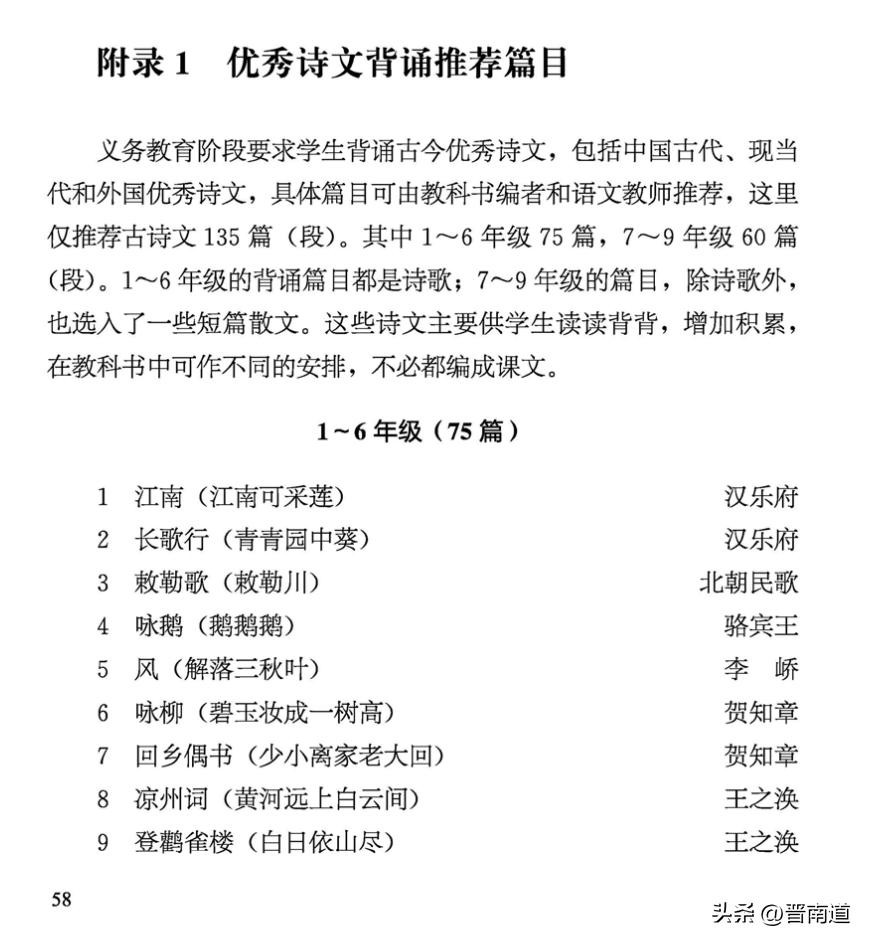 这75首的名录,是在教育部2022年发布的《义务教育语文课程标准》里明确提及的(附件1)。