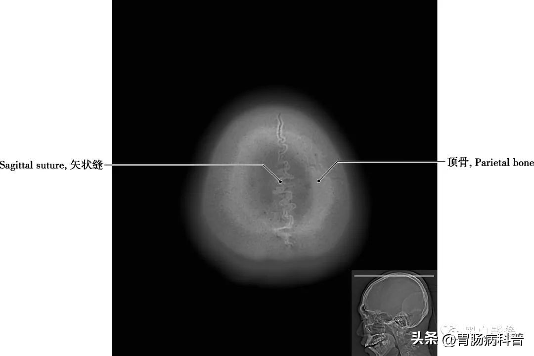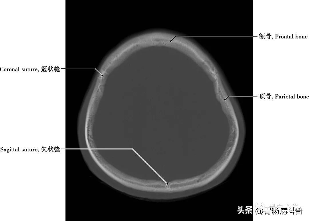 冠状缝 顶骨与额骨之间的骨缝,呈冠状位走行