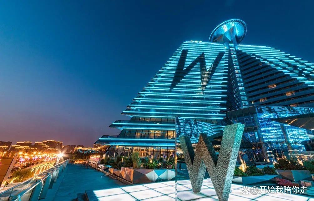 如今每个夜晚,人们都可以看到巨大的酒店W闪耀在半空,流光在湖水里荡漾。