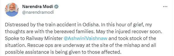 三辆火车相撞,已致 120 人死亡,超 800 人受伤!莫迪发文:深感痛心
