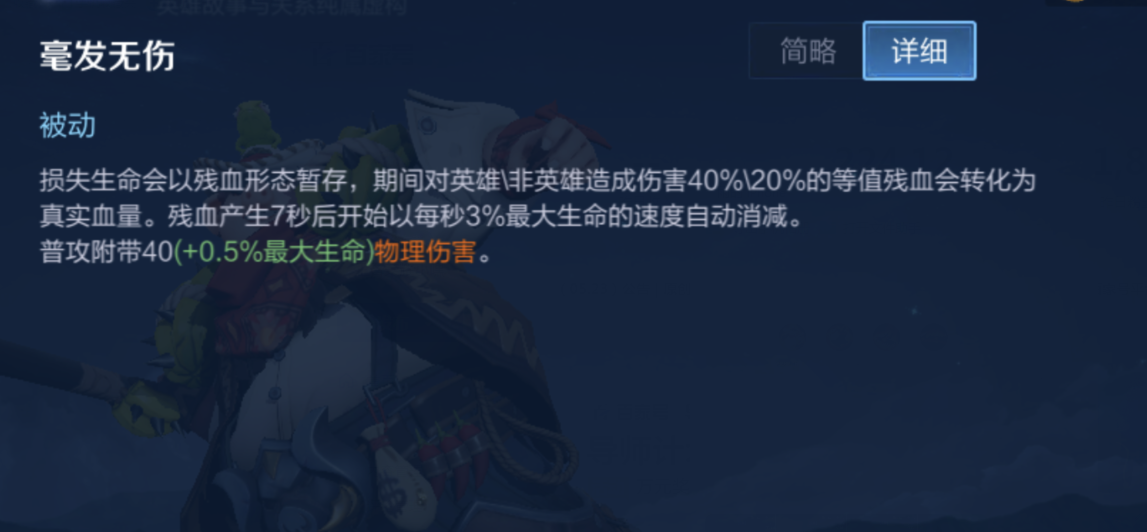 主要原因在于猪八戒的被动技能,它可以将猪八戒损失的生命转化为“虚假”的血条,这部分血条可以通过对英雄(40%)或非英雄单位(20%)造成的伤害等值转化为自身真实的生命值(忽略免伤)。