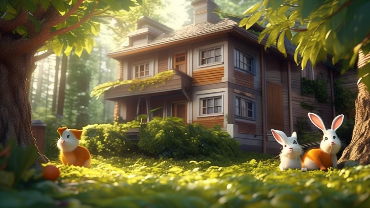 有一天,大灰狼听说小兔子的家里有很多胡萝卜,馋得直流口水。他偷偷摸摸地来到小兔子的家门口,想找个机会捉住小兔子。可是,小兔子聪明勇敢,早就发现了大灰狼的企图。于是,小兔子和小动物们一起想出了一个办法来对付大灰狼。