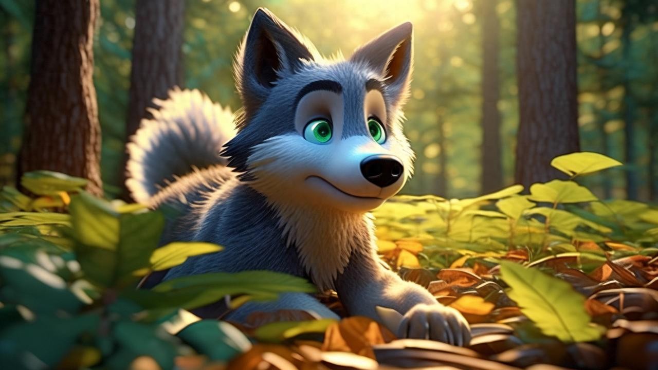 很久很久以前,在一个遥远的森林里,住着一只可怕的大灰狼。他的眼睛是绿色的,毛茸茸的尾巴摇来摇去,嘴里露出锋利的牙齿,看起来十分可怕。小动物们一听到大灰狼的名字就吓得浑身发抖。
