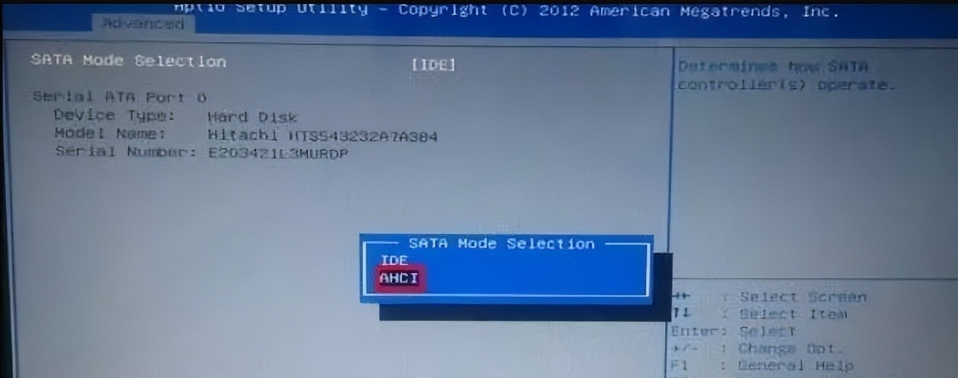 2、随后会弹出一个模式选择窗口,在这里我们通过上下方向键移动光标选择“AHCI”模式,接着按回车键执行即可,如下图所示: