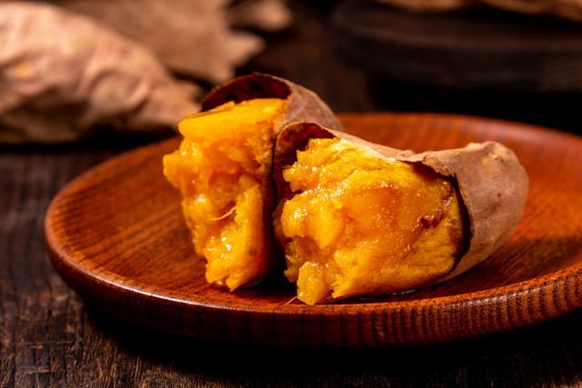 2.烤红薯,烤红薯皮烤得酥脆,从顶部撕开后,橙红色的红薯肉会露出,香气四溢。初尝是软糯的绵绵口感,然后香甜的味道会萦绕在舌尖。吃完之后,还会有无穷的回味。