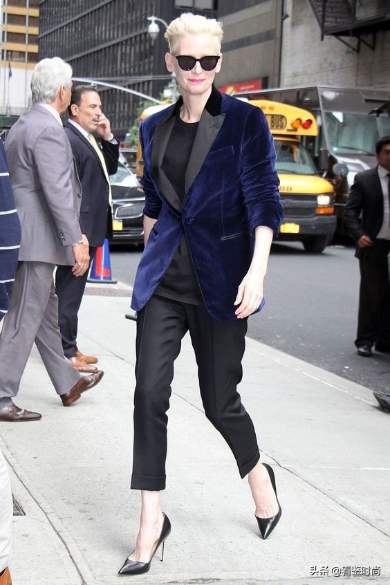 蒂尔达·斯文顿(Tilda swinton)也是大家熟知的国外女星,她今年已经60岁,短发造型很有气质。它的这身西装穿搭就是最好的典范,你只需要搭配一个精致的包袋就可以完成整体造型。