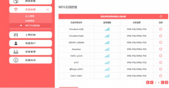 第二步,无线设置开启wds,扫描出需要桥接的主路由器,并输入主路由器的密码,保存